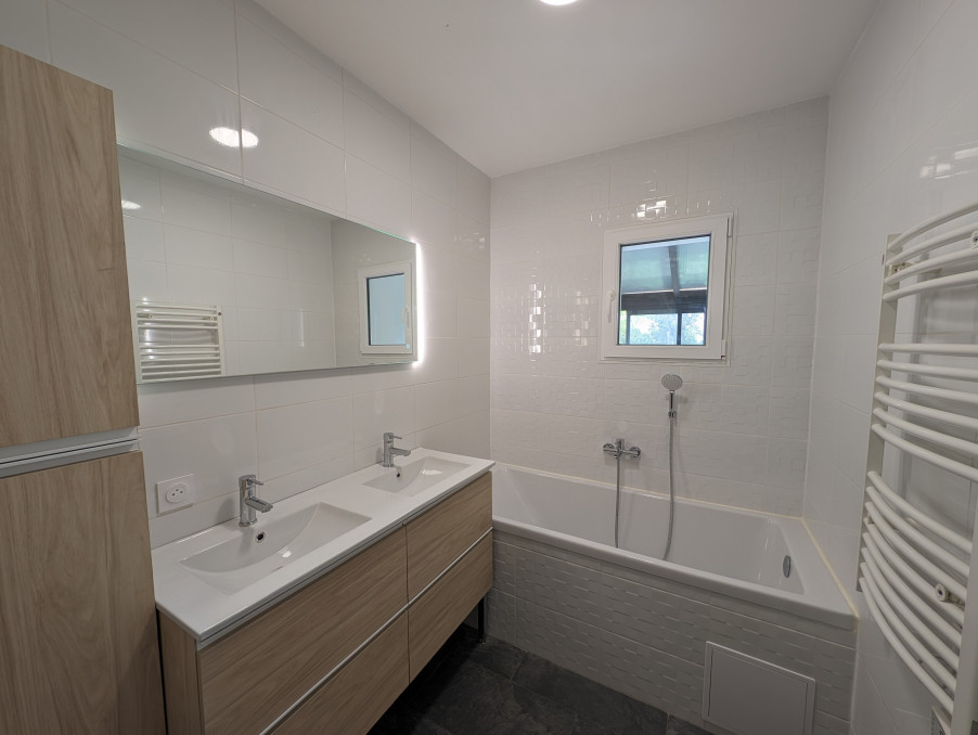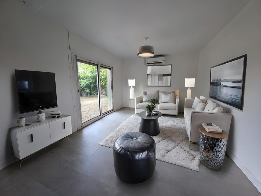 A Saint Sulpice et Cameyrac, dans un quartier résidentiel proche de la gare SNCF reliant Bordeaux et Libourne plusieurs fois par jour, charmante maison de plain-pied entièrement rénovée de 81 m².