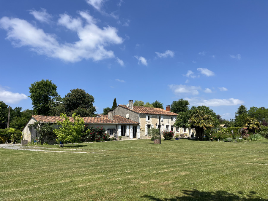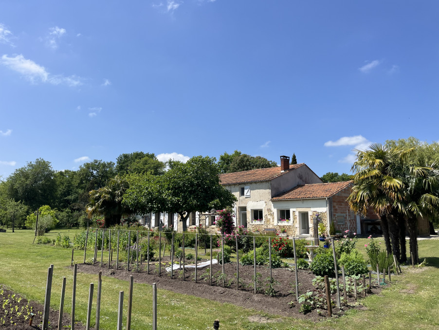 À SAISIR ! Sur terrain entièrement constructible de plus d'un hectare, magnifique longère en pierre de 385 m2 habitables, avec dépendances de plus de 515 m2, ses jardins fleuris, son parc boisé de chênes centenaires à seulement 10 minutes des plages océanes...