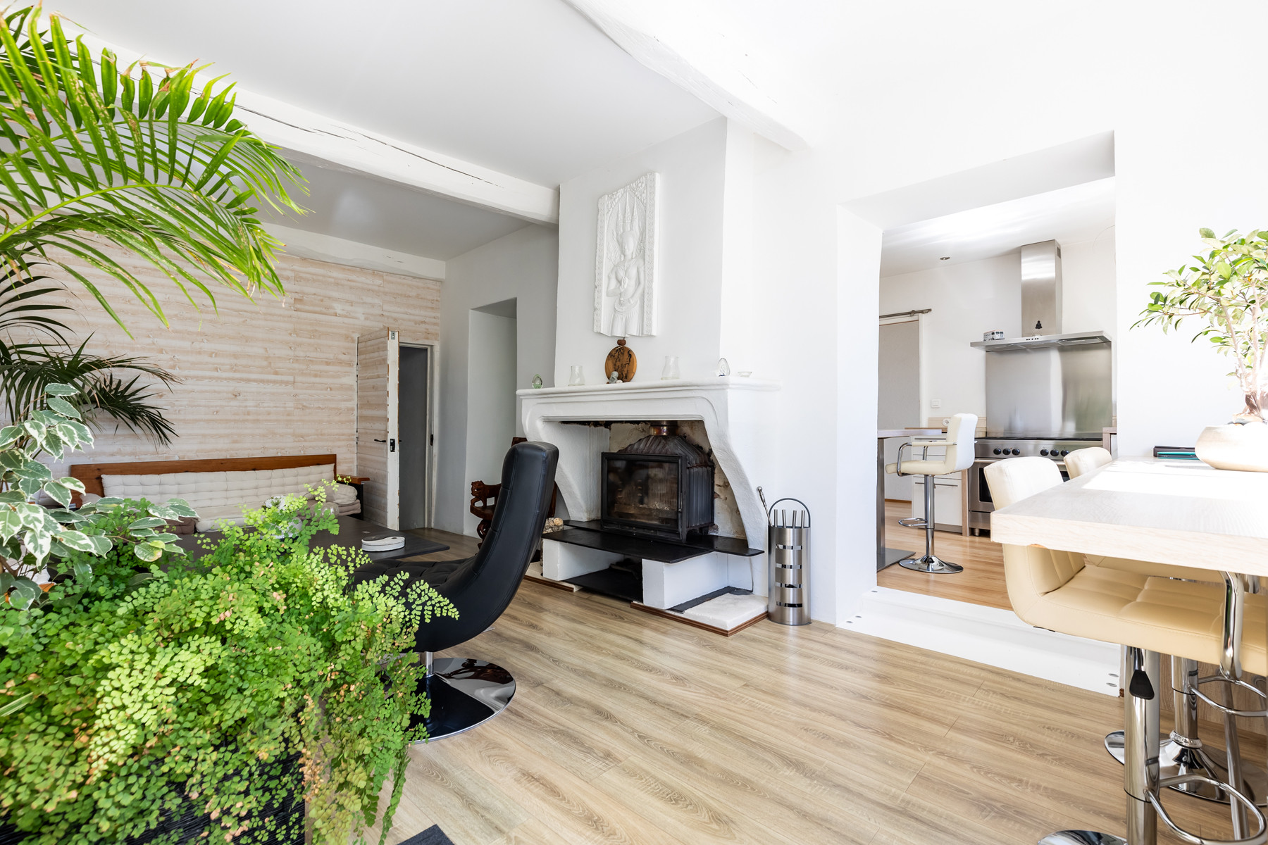 La maison principale, sur deux niveaux, récemment rénovée, est composée de 2 chambres de 14 et 17 m2, d'un espace "dortoir" de 78 m2, d'une salle d'eau, d'un dressing, d'un séjour de 21 m2, d'une cuisine de 10 m2 et enfin d'une salle à manger "cathédrale" de 36 m2.